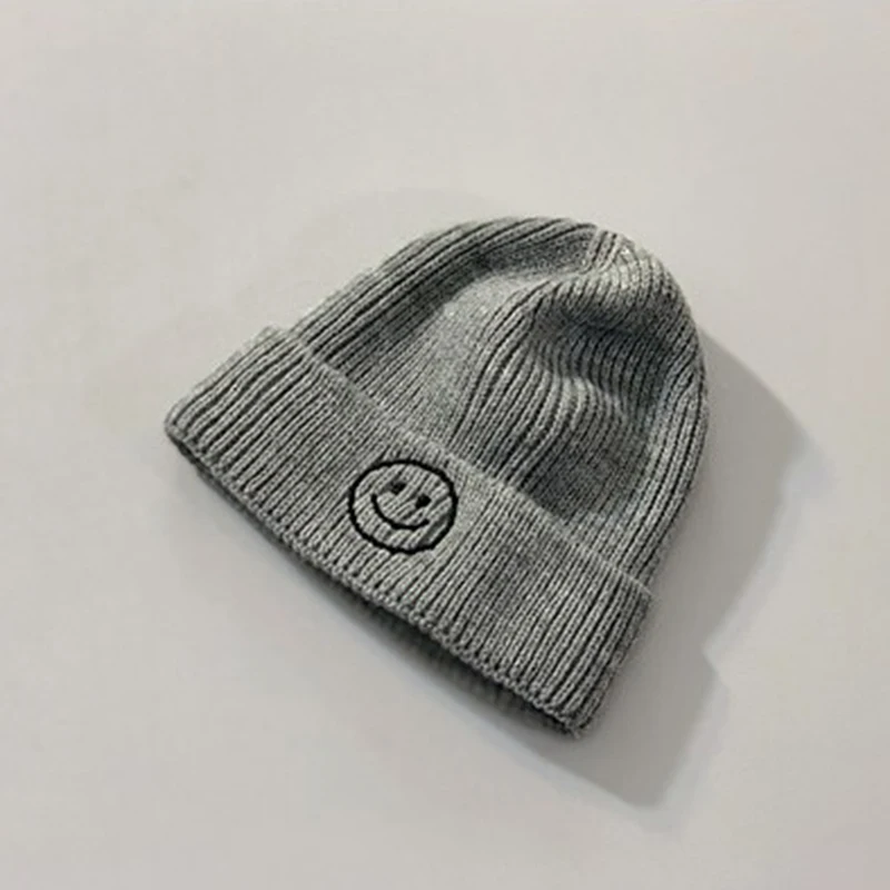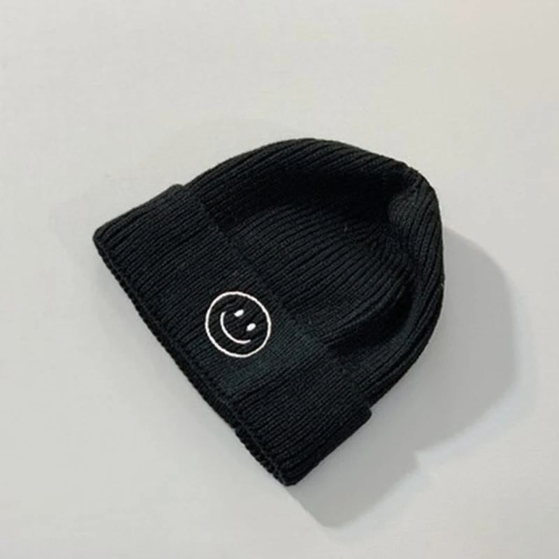 Baby Hat Solid Color Boy Girl Cartoon Smile Embroidery Winter Kids Knitted Hats Children Warm Beanies Child Caps For Babies
