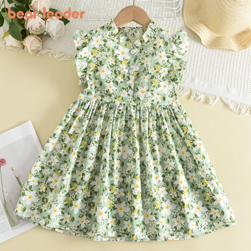 Bear Leader Girls Casual Dresses 2022 New Summer Kids Baby Flowers Print Costumes Floral Party Birthday Princess Vestidos 2-6Y