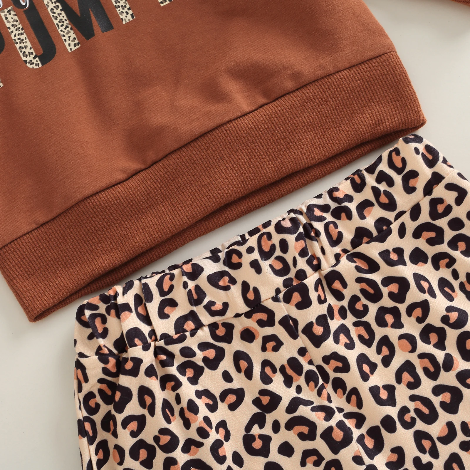 Citgeett Autumn Halloween Kid Girls Pants Suit Long Sleeve Letters Print Loose Tops + Leopard Bell-Bottoms Trousers Clothes