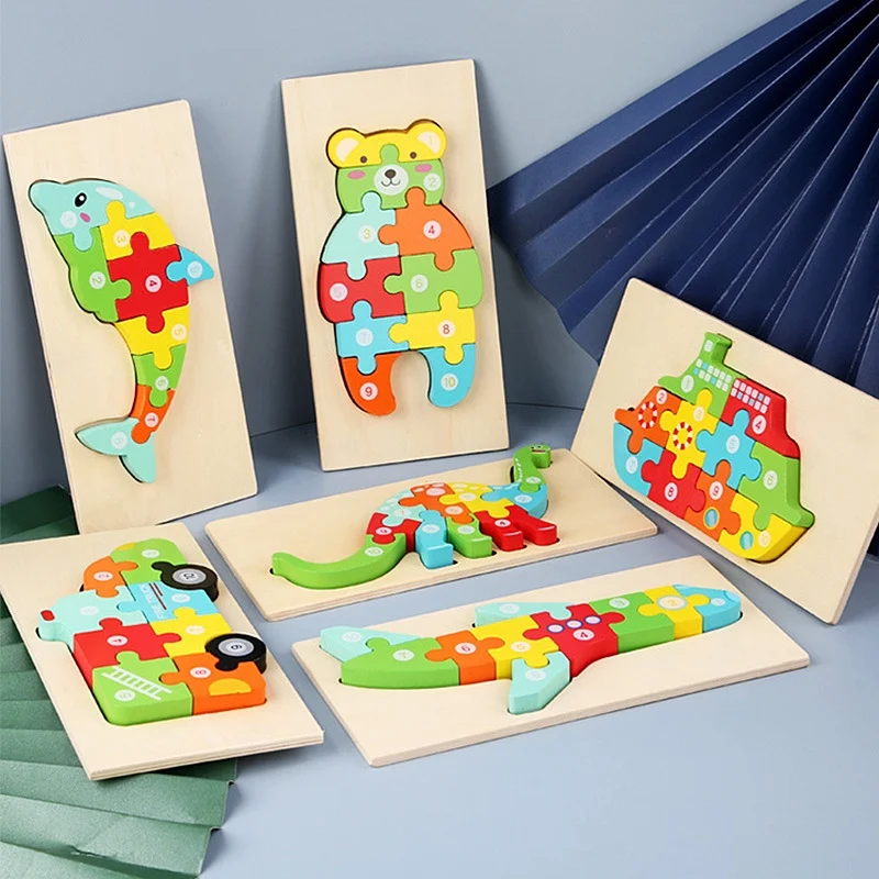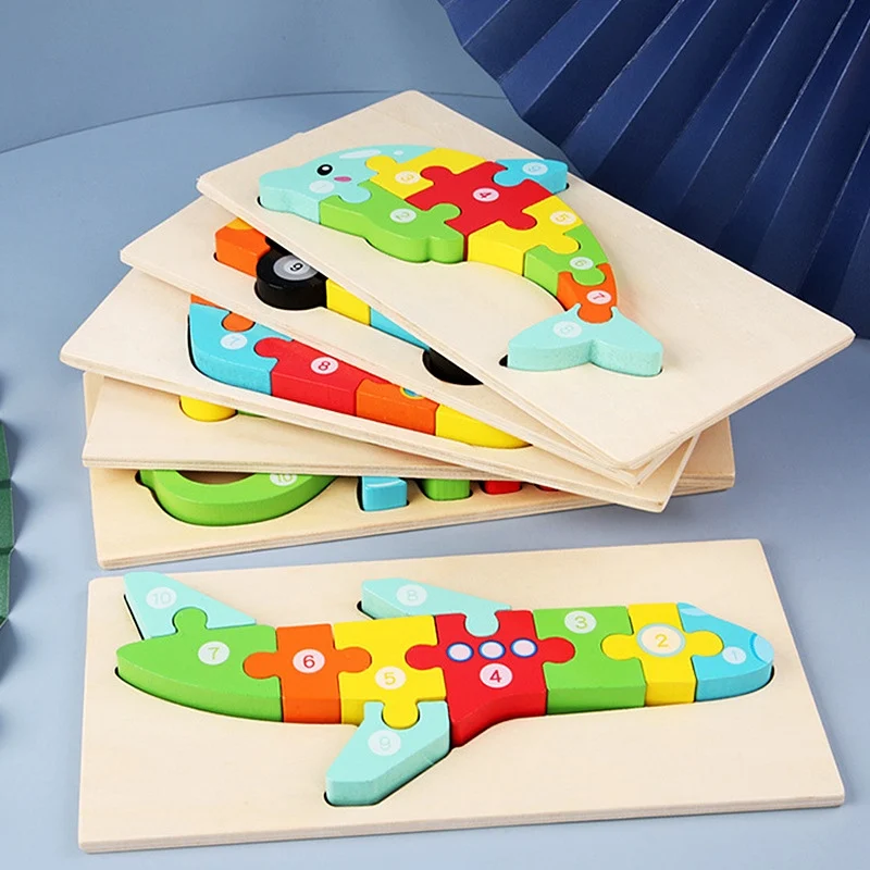 New Kid Jigsaw Board 3D Wooden For Toddlers Puzzle Tangram Cartoon Vehicle Animals Learning Educational Toys for Children Gifts