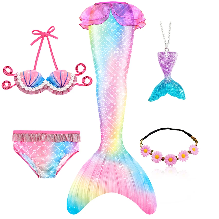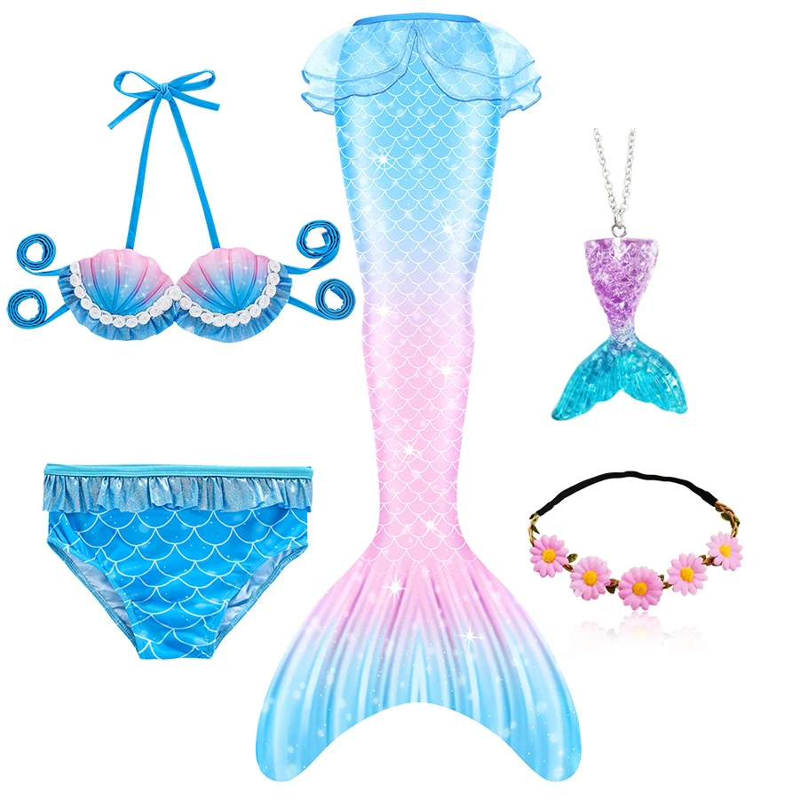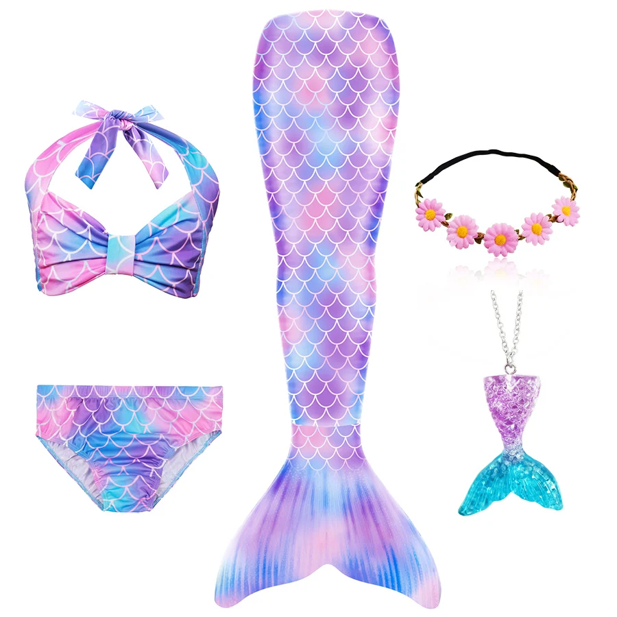 New Kids The Little Mermaid Tails Children Memaid Swimsuit Bikini Bathing Suit Halloween Costume Girll Can add Monofin For Pool