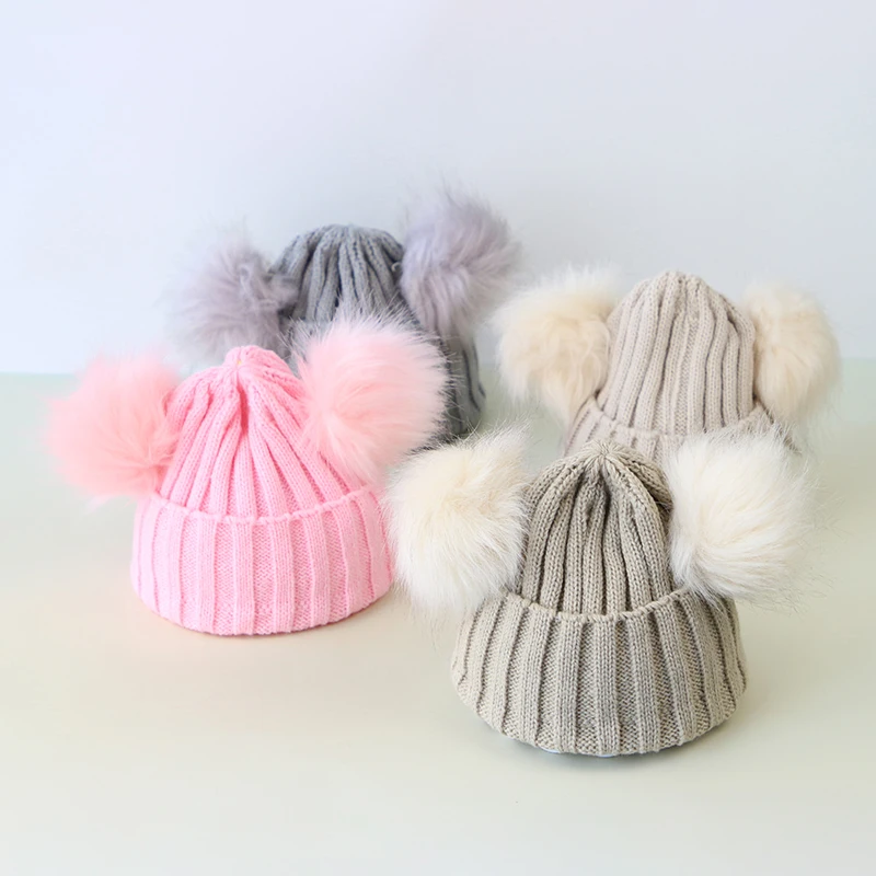Newborn Baby Hat Scarf Set Pompom Cartoon Infant Baby Girl Boy Winter Hat For Kids Warm Knitted Children Boys Girls Beanie Cap