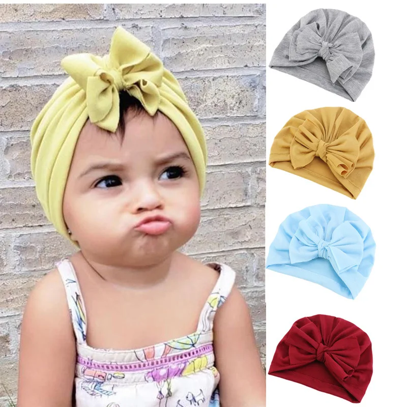 Solid Color Baby Hat Big Bowknot Baby Girl Hat Turban Spring Head Wraps Baby Kids Bonnet Beanie Newborn Headband 0-2 Years