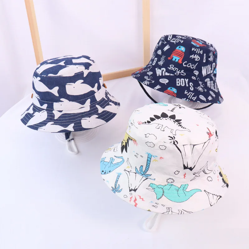 Spring Autumn Thin Cartoon Dinosaur Print Baby Bucket Hat Cotton Fisherman Hats Kids Summer Toddler Boys Girls Panama Sun Cap